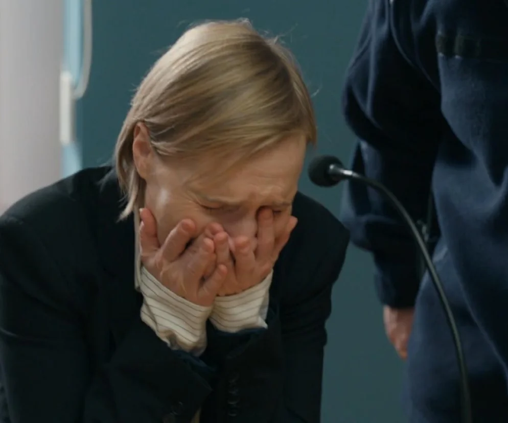 Rozpacz na sali rozpraw udzieli się również najbliższej osobie oskarżonej. Obserwująca całe zajście Dominika nie zdoła powstrzymać łez rozgoryczenia, zdając sobie sprawę ze swojej ogromnej bezradności wobec bezdusznego systemu. W dramatycznym momencie, gdy funkcjonariusz będzie eskortował zakutą w kajdanki morderczynię do celi, jej przyjaciółka zdobędzie się na ostatni gest i zablokuje im na moment drogę wyjścia.