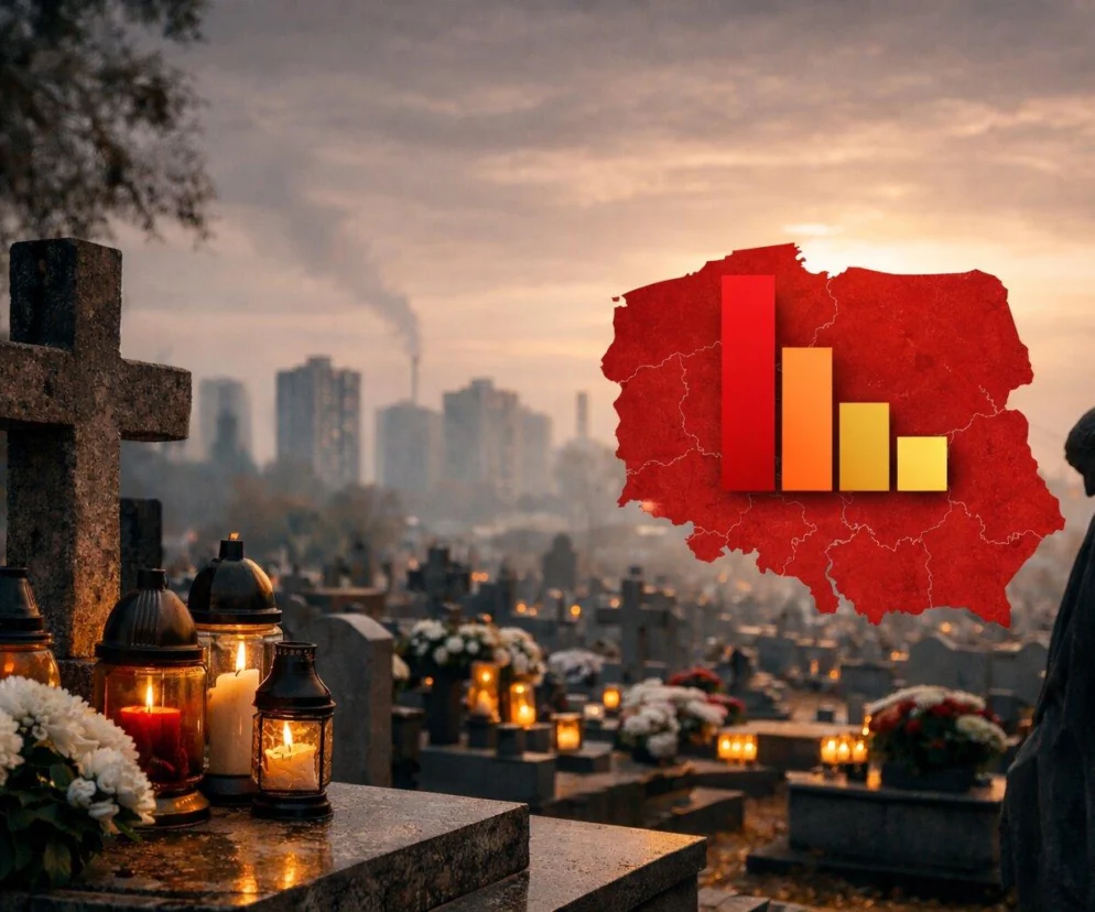 Najwięcej zgonów w 2025 roku odnotowano w województwie mazowieckim – 56 518. Drugie miejsce zajmuje województwo śląskie, gdzie liczba zmarłych wyniosła 51 025. To jedyne regiony w Polsce, w których liczba zgonów przekroczyła 50 tys.