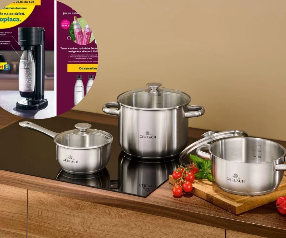 W czwartek, 26 marca, Lidl Polska zaprasza do sklepów stacjonarnych, gdzie czeka na klientów jeszcze więcej kuchennych promocji. Na lidlowych półkach znajdziemy m.in. frytkownicę beztłuszczową Air Fryer 2000 Series NA299/00, 1500 W, 4,2 L Philips, którą kupimy 130 zł taniej, za 269 zł4/szt. To wszechstronne urządzenie sprawdzi się nie tylko przy przygotowywaniu chrupiących frytek – z powodzeniem wykorzystamy je także do wielkanocnych przekąsek, soczystych mięs czy nawet słodkich muffinek. Air Fryer oferuje aż 9 automatycznych programów, które ułatwiają codzienne gotowanie, a dzięki technologii RapidAir potrawy mogą zawierać nawet do 90% mniej tłuszczu. Wszystko za sprawą szybkiego obiegu gorącego powietrza wewnątrz komory, który zapewnia idealną chrupkość i smak. W ofercie Lidl Polska pojawi się także zestaw garnków First z pokrywkami, 10 elementów od polskiej marki Gerlach. Naczynia ze szczotkowanej stali i z trójwarstwowym dnem dostaniemy w supercenie: 249 zł/zestaw. A jeśli po Wielkanocy zostanie nam jedzenie, warto zaopatrzyć się w zgrzewarkę próżniową z zestawem akcesoriów, 130 W SilverCrest 53% taniej z Lidl Plus, w cenie 69 zł5/zestaw. Urządzenie oferuje 5 praktycznych funkcji z intuicyjnymi lampkami kontrolnymi, takimi jak: próżnia/stop, tryb mokre/suche, zgrzewanie, normalne/miękkie oraz próżnia + zgrzewanie. Dzięki temu bez trudu przedłużymy świeżość potraw i ograniczymy marnowanie żywności. W ofercie sieci pojawią się także zestawy folii do zgrzewarki próżniowej SilverCrest 80% na drugi, tańszy produkt z kuponem w aplikacji.