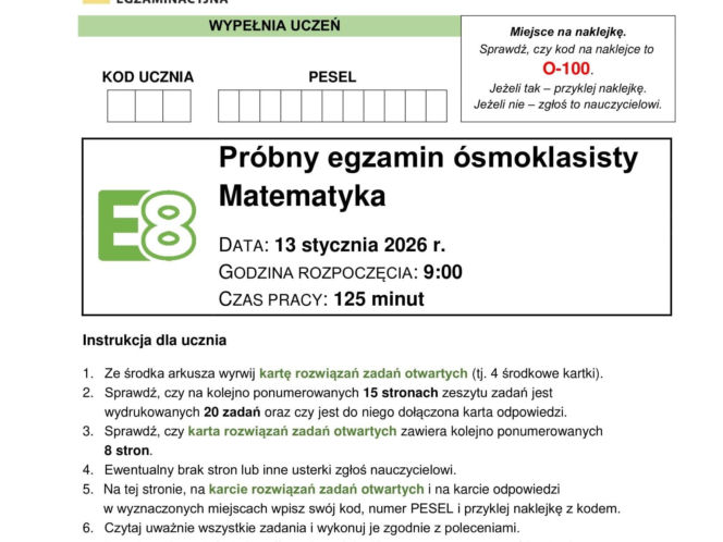 Próbny egzamin ósmoklasisty 2026 - matematyka. Arkusz CKE